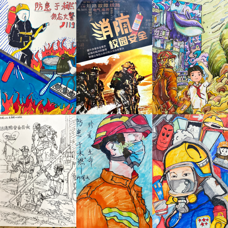 同学们结合自己的专业特色,通过素描、水彩、海报设计等方式,满怀真挚情感,描绘出他们心中消防英雄的形象,致敬身边的英雄。由评委老师选出优秀作品进行为期一周的展览,提高同学们在人身财产安全方面的警惕性和应对能力。
