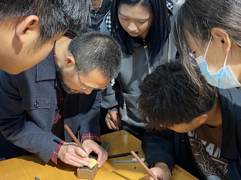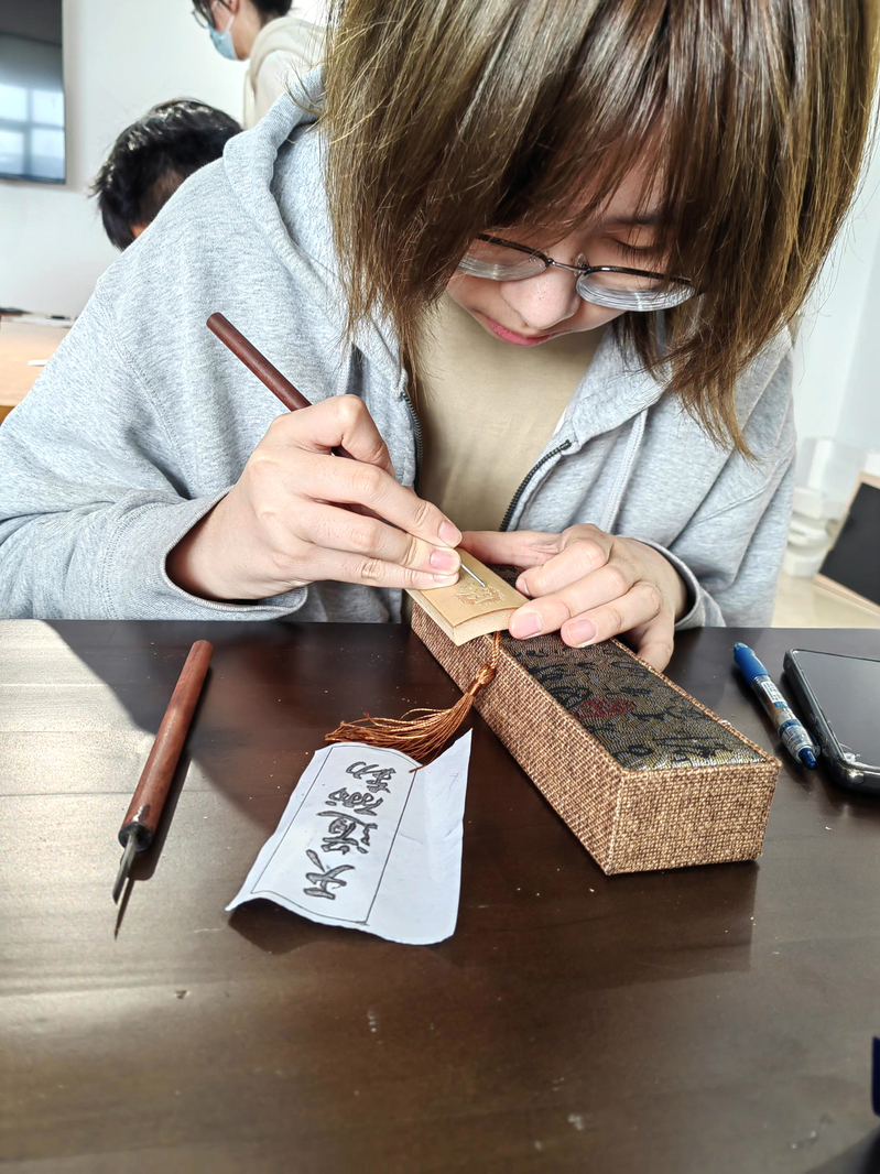 11月8日,在创意公司8130智慧教室举办了首次开班活动。首先,徐风老师通过两段视频介绍了常州留青竹刻的发展历程、艺术价值、工具设备、工作流程,并带来了两件精品原作让员工现场观摩,感受留青竹刻的独特魅力。之后带领第一期员工到7302徐氏竹木刻工作室进行了雕刻活动,员工们在徐老师的指导下,兴致高涨,描稿、刻线、铲皮、精修,表现出良好的艺术素质,工匠精神得到传承。