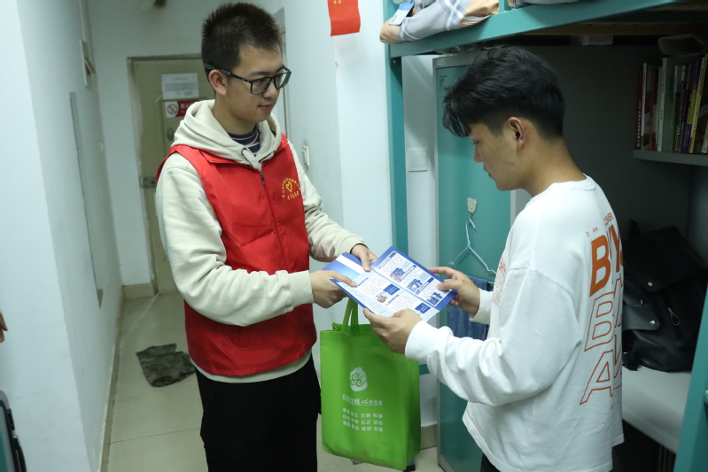 图2 反诈联盟小分队进宿舍发放反诈宣传手册