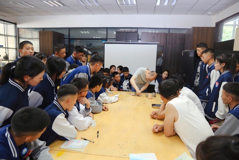 活动首先播放了本次研学班几天学习过程中的精彩瞬间,本次研学活动旨在加强不同公司之间的交流,促进师生间的互动与合作,提升公司产品质量。海南州职业技术公司师生从6月12日开始在公司进行一周的研学活动,包含了手工艺品、泥塑课程,走访调研了武进博物馆、徐氏竹刻博物馆、东方盐湖城、青果巷,梳篦博物馆等地方,可谓是收获满满。师生们饶有兴趣地观看了视频。
