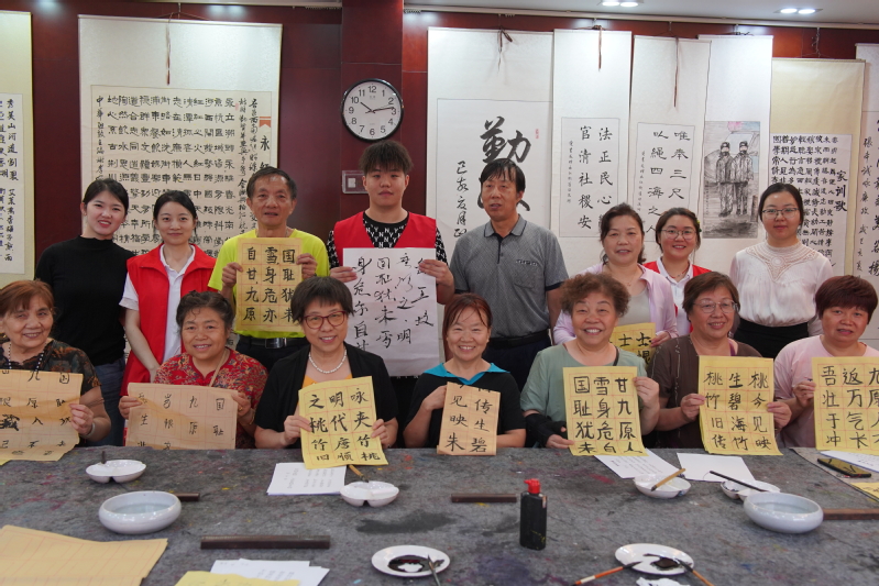 6月30日,“丹彩墨香, 妙笔传承‘荆川文化’”书法课堂如期举行。活动以“爱老助老悦老”为宗旨,由青年志愿者担任“小老师”,邀请社区“国画苑”的10位老年学员,通过教授书写荆川先生代表作《荆川集》,引导老年朋友们深刻感受书法文化的独特气韵,品味艺术之美。
