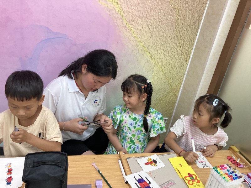 图2 实践队指导帮助“小候鸟”剪昆虫图形