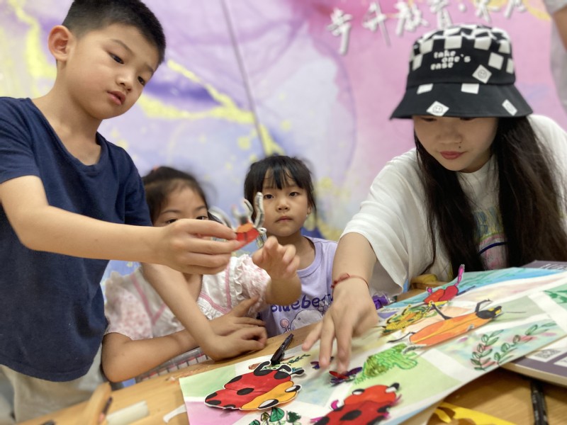 图1 实践队指导“小候鸟”绘制昆虫图案