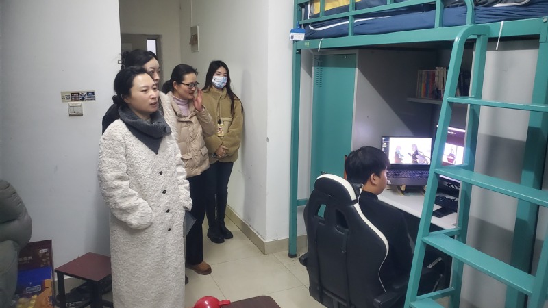 图2 创意公司党总支书记祝燕芳、副书记柯赟洁组织学工办辅导员、班主任走访宿舍