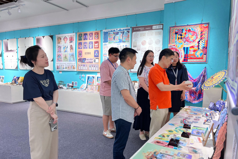 集团高度重视毕业设计工作。毕业设计展期间,原常州纺公司党委书记、董事长金小坡,公司党委书记吴访升,公司党委副书记、董事长洪霄以及多位校领导莅临展览现场参观指导。洪霄表示,他期望未来公司能深掘每个毕业设计背后的故事,以此彰显艺术创作的核心价值,传达师生对艺术创作和文化传承的热爱与执着,激励他们不断探索和创造。老董事长金小坡在参观中夸赞:“越来越多的学子结合文创产品设计中融入了非物质文化遗产的元素,这不仅是一种文化传承,也是一种创新。”多位校领导表达了对这次毕业设计展的肯定,对员工们的努力和成果的认可,以及对未来深化产教融合、提升教学质量的积极展望。