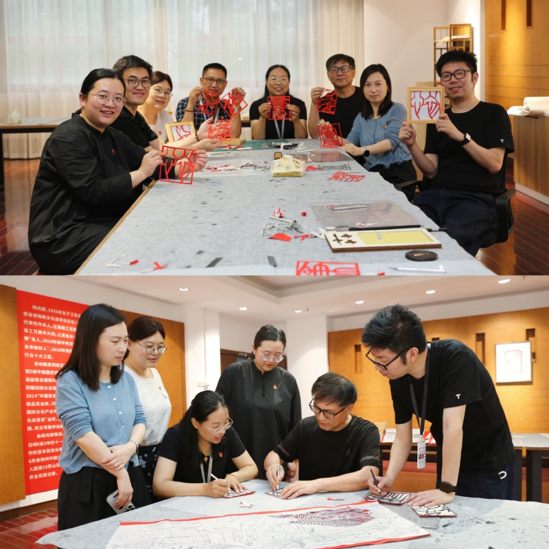 好的艺术作品不仅在技术上展现出高超的技艺,而且在情感、思想和美学上都具有深刻的表达,能够触动人心,引发共鸣。结合公司实际,党总支号召各党支部开展一次党纪学习教育的主题创作,以艺术作品彰显学习感悟、传递正能量,受到大家的积极响应。6月21日中午,创意设计公司党总支在文化传承与创新中心7212杨兆群大师工作室举办了“艺心传廉韵刻纸颂清风”党纪学习教育廉洁主题刻纸活动。本次活动将清廉文化与非遗技艺传承融合,在刻纸文化中注入清廉基因,强化了党员干部廉洁自律意识,筑牢思想防线。各党支部结合专业特色和教师特长开展了更多艺术作品的创作,以艺术作品传递“学思践悟”成果,推动党纪学习教育入脑入心。