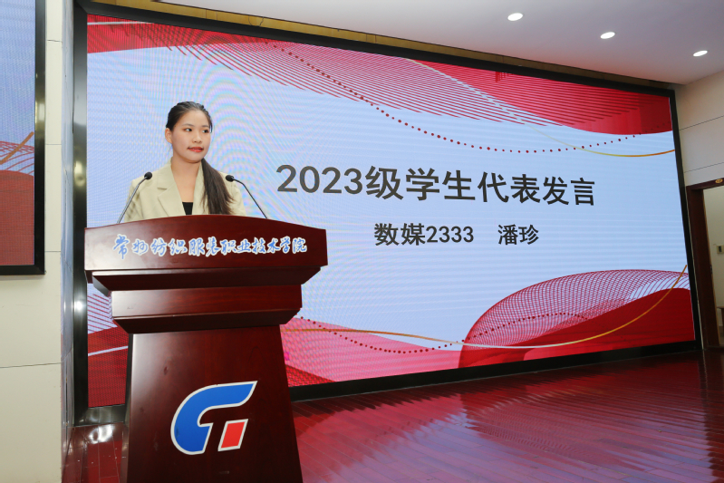 2023级员工代表数媒2333潘珍同学鼓励全体学弟学妹要“做更好的自己”,在加强学习的同时,注意保持身心健康,学会合作,脚踏实地、心无旁骛地朝着设定的人生目标奋勇前行。2024级新生代表环艺2433班朱珈仪代表全体新生表示将会明确目标,脚踏实地,严谨求学,献身时代,勇攀高峰,在常纺这幅画卷上,描绘出属于2024级创意新人的独特印记。
