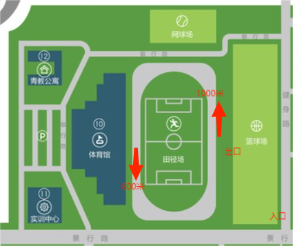 1.800米和1000米测试完成后请同学们按照到达先后顺序有序在终点排好队,以便带到录入处录入成绩。