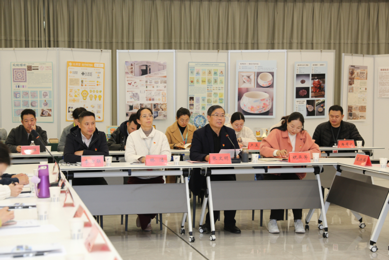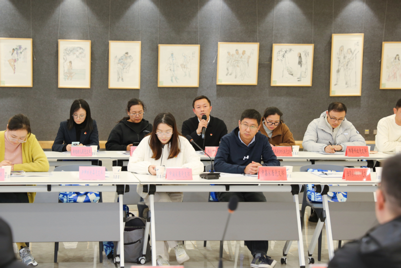 在参观了文化传承与创新中心以后,大家来到领秀展厅开展座谈交流。公司党委委员、副经理张文明、校企合作处副处长王兴伟、科技处副处长苏昊、创意设计公司党总支书记祝燕芳、数字商贸公司党总支书记林洁、yl23411永利官网经理李方联、副经理武传奇、党支部书记、教师代表出席了座谈会。会议由创意设计公司党总支书记祝燕芳主持。