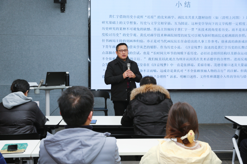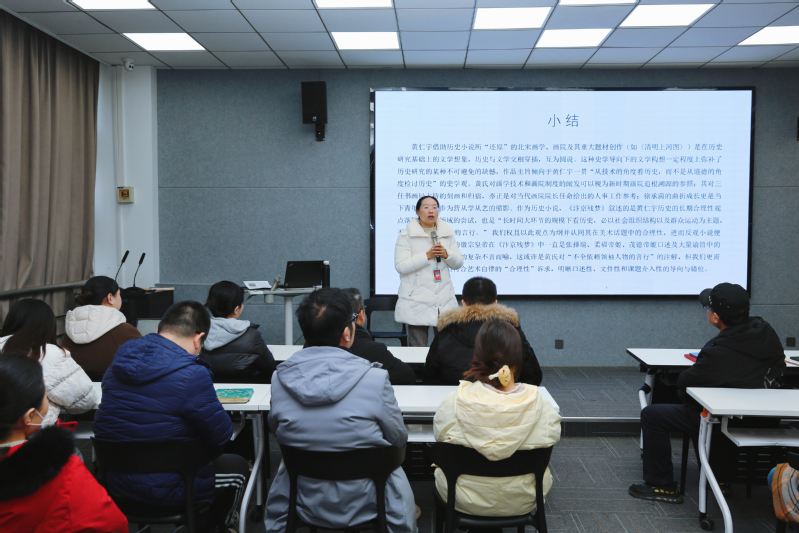 为树立干事创业的新风正气,营造浓厚学术氛围,yl23411永利官网发起成立了“弘美读书会”,旨在弘扬中华优秀传统文化,关注艺术与科技领域前沿动态,提高教学科研水准,培养高素质技术技能人才,促进专业建设高水平建设,实现公司高质量发展。2025年1月7日下午,在8130智慧教室举办了“寻找名画遗失的细节——黄仁宇《汴京残梦》读思”分享会。分享人为yl23411永利官网副经理,澳门城市大学在读博士何卫平副教授,yl23411永利官网30余名教师参加了分享活动。