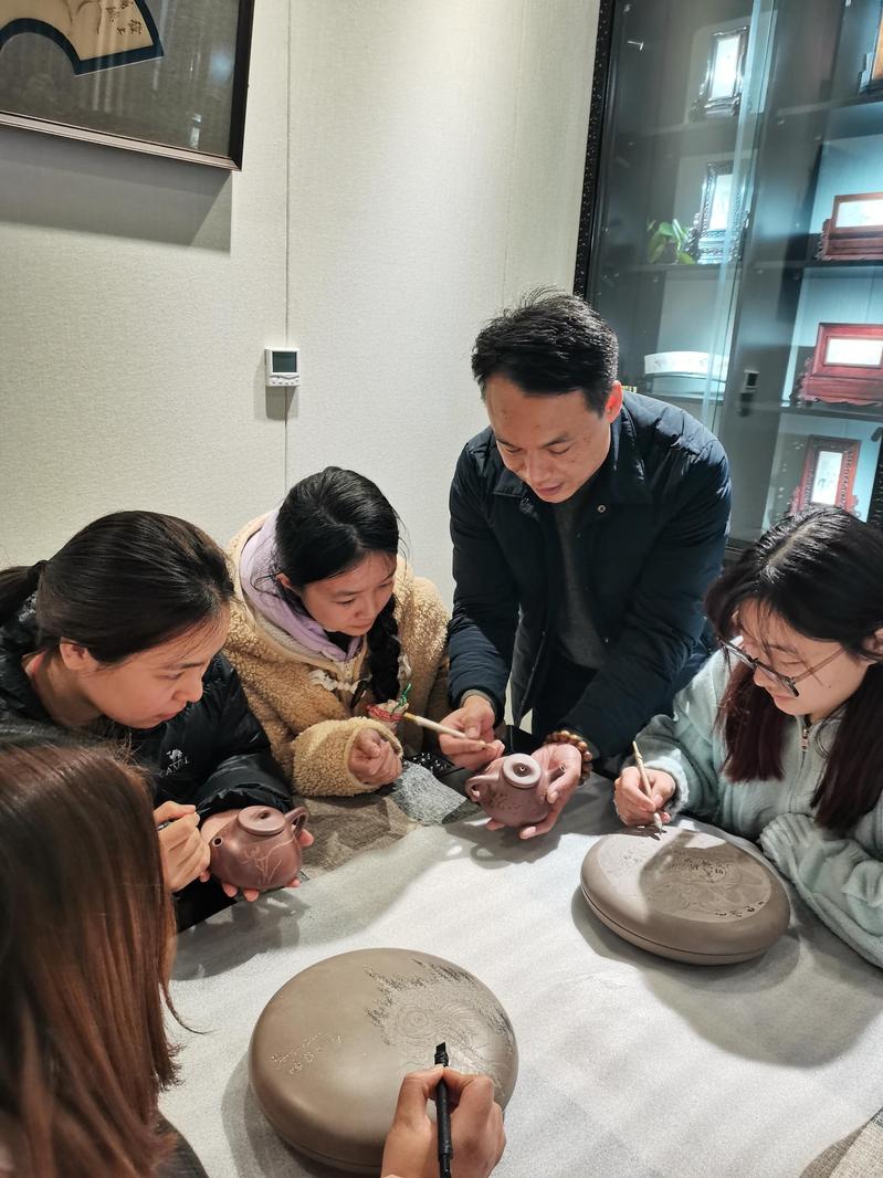 近日,工艺美术品设计专业严骏、林艳两位老师前往王明盛浅刻艺术工作室进行参观走访,并亲切探望了在该工作室实习的员工。