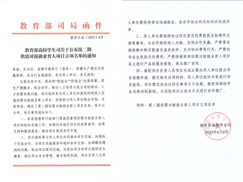 近日,教育部发布了《教育部高校员工司关于公布第二期供需对接就业育人项目立项名单的通知》,创意公司与完美世界教育科技(北京)有限公司、广东虚拟现实科技有限公司对接的2个项目获准立项。供需对接就业育人项目是教育部为落实党中央、国务院“稳就业”“...